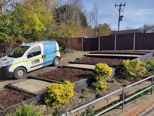 Six CRL colleagues spent 2 days on site in the sunshine painting fences, trimming hedges, clearing weeds & leaves, and laying weed-suppressant membrane topped with bark.