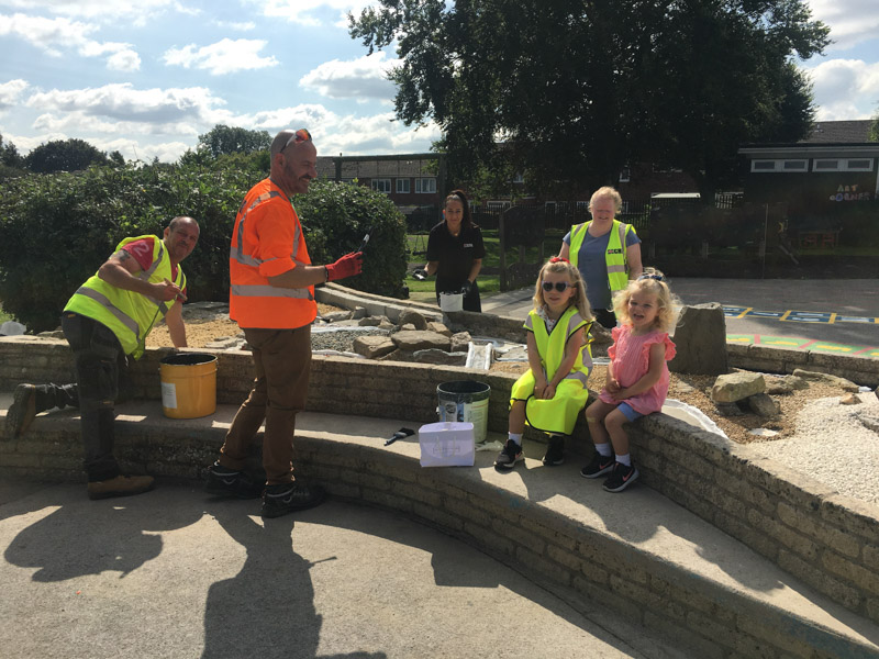 We approached Chandag Infants School, to offer our skills, expertise, materials and equipment to completely clean and repair an area called ‘Small World’ which had become unsafe for the children to use.
